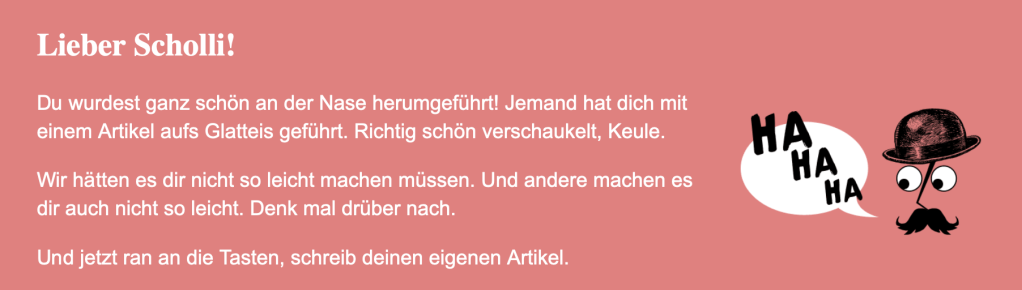 Und noch eine Abschlussbemerkung: Schülerinnen und Schüler lernen immer noch hauptsächlich für Prüfungen und gute Noten. Weil die Abschlussprüfung (hier: Abitur) das ganze Schulsystem, alle Lernziele, alle Formen der Leistungserhebungen von der Oberstufe bis in die fünfte Klasse runter und vielleicht schon vorher prägt. Also Auswendiglernen. Wenn man Lernen in der heutigen und zukünftigen Welt ernst nimmt, muss man genau da ansetzen. Nur neue Prüfungsformate werden wirklich was an der Situation ändern. Mehr dazu hat prüfungskultur.de zusammengestellt.