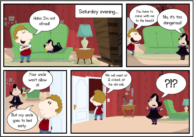 Etwas kreativere Aufgaben rund um Lehrbuchtexte gehören schon seit längerem zum Standardrepertoire der Lehrbuchverlage. Nachspielen, erzählen aus der Sicht einer der Figuren, ein anderes Ende formulieren, all dies mit dem Zweck, dass die Schüler den Text auch im Detail verstehen und zu eigenständiger Sprachproduktion gebracht werden. Die Aufgabe aus dem Englischbuch, Teile der Geschichte als Comic wiederzugeben, haben wir letzte Woche auf den iPads ausgearbeitet.
