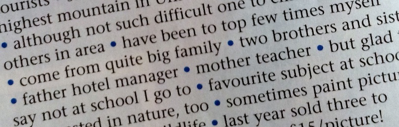 Der Mehrwert dieser Vorgehensweise ist, dass sich die Schüler dabei ganze Sätze oder zumindest Satzteile in der Vorbereitung einprägen müssen, welche die kürzlich behandelten Grammatikstrukturen enthalten. Zudem müssen sie sich von der gedruckten Textvorlage lösen und die grundlegenden Sprachstrukturen selbst nachbilden. Und nicht zuletzt sorgen die teilweise doch recht originellen Fundstücke für eine durchaus gewünschte Heiterkeit bei den Mitschülern …