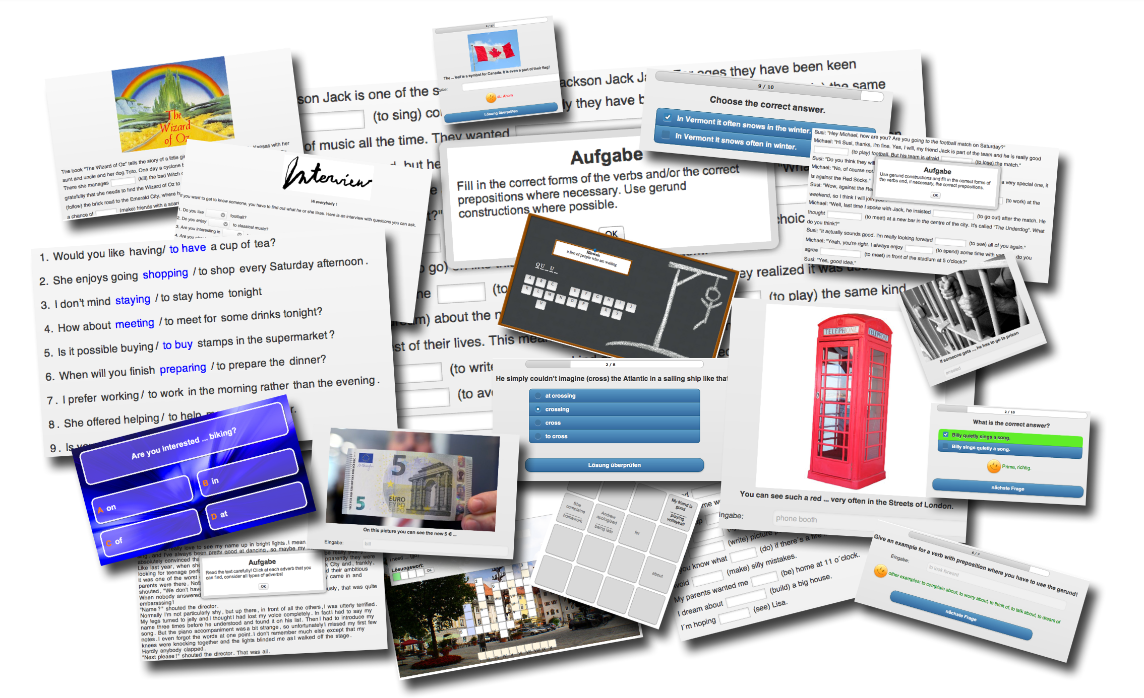 Hier eine Collage aus den Übungen, welche die Augsburger Studenten für uns zur Vorbereitung der letzten Schulaufgabe in diesem Jahr entwickelt haben (zum Vergrößern klicken):