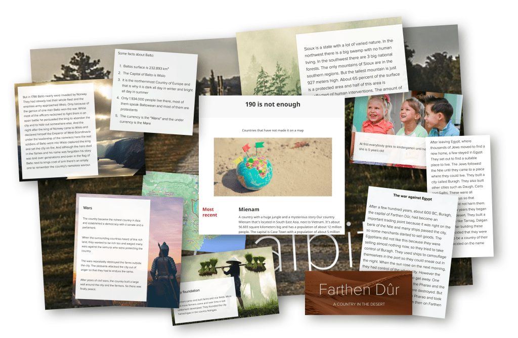 Ziel dieses Experiments war der Gedanke, dass sich die Schüler genau über die geografischen, geschichtlichen, wirtschaftlichen, religiösen und kulturellen Hintergründe der Nachbarländer ihrer Phantasiestaaten erkundigen und kreativ ein nicht existierendes Land entwerfen sollten, das es tatsächlich geben könnte.