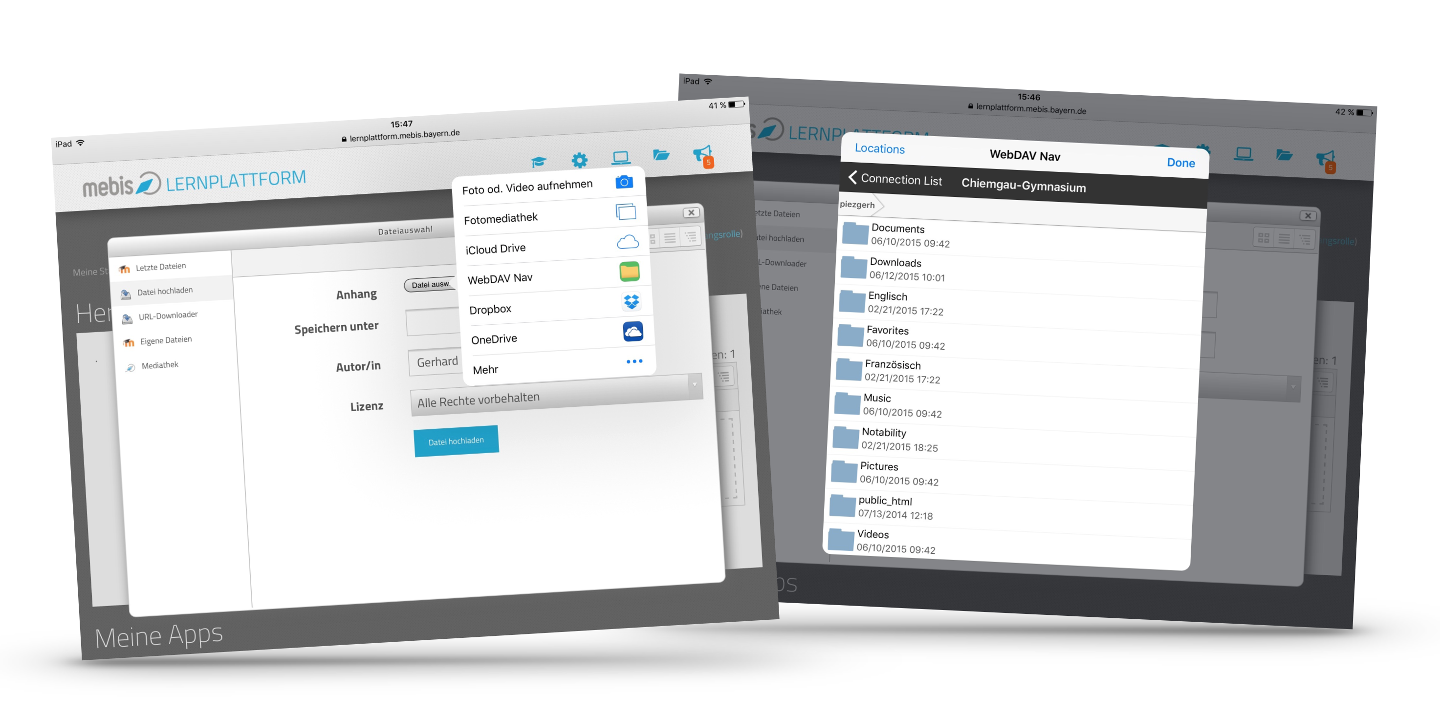 Im Zuge des Übergangs von unserer homogenen iPad- zu einer herstelleroffenen Tablet-Klasse mussten wir auch beim Umgang mit Dateien neue Wege beschreiten. Sicher kann man mit einem Apple-Gerät ganz hervorragend arbeiten, ohne sich Gedanken um Dateisystem machen zu müssen. Spätestens bei der Arbeit mit unserer Lernplattform mebis muss man aber doch ran an die Files – beim Einsammeln von Schülerarbeiten zum anschließenden Feedback und evtl. Bewertung gibt es zum „Datei auswählen …“-Button keine Alternative.